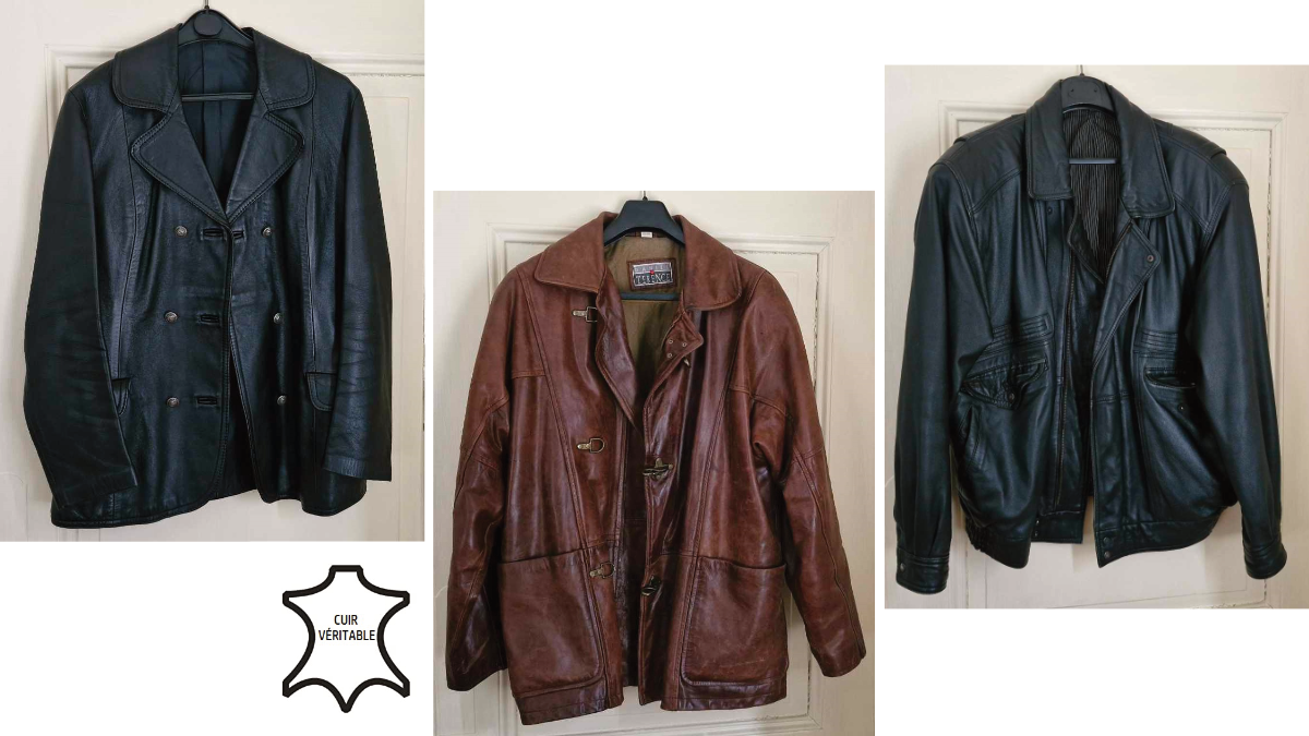 Brocante : Arrivage de vestes et blousons en cuir en très bon état.