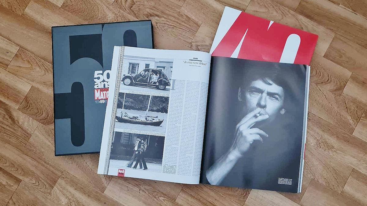 Collector : Pour les cinquante ans de Paris-Match, soit l'équivalent de deux mille cinq cents numéros, ou de 344500 pages, neuf cents photos ont été exhumées de la photothèque du magazine de Daniel Filipacchi pour réaliser les deux livres qui composent ce magnifique coffret (1998).