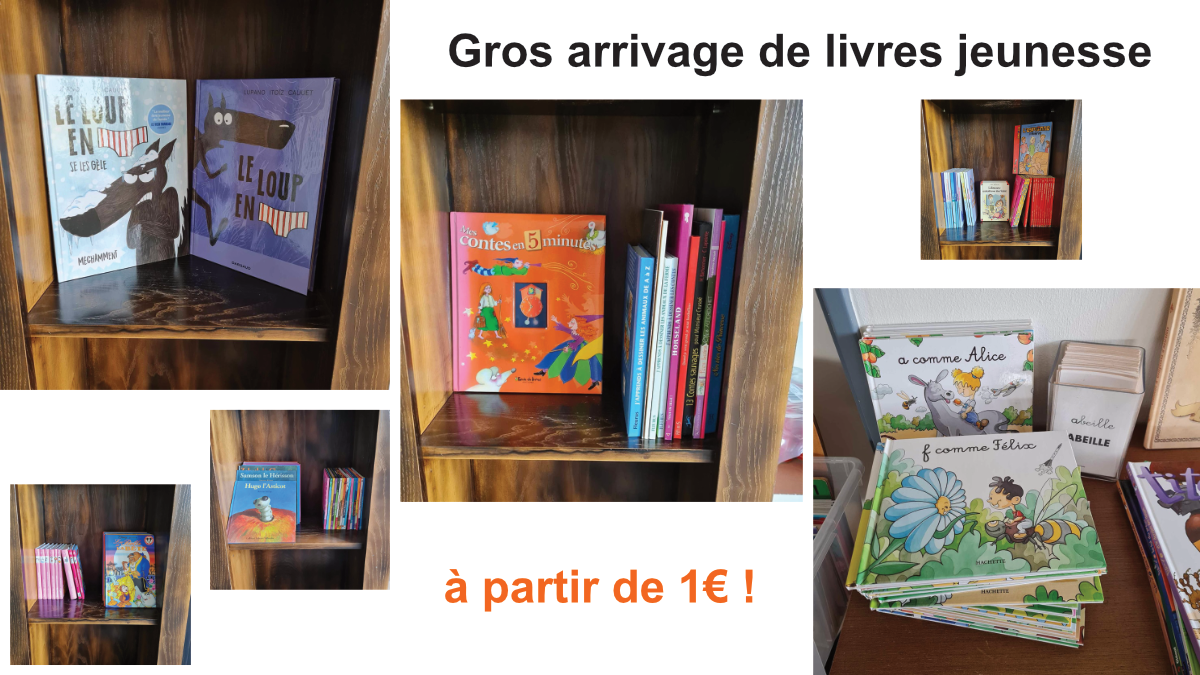 Gros arrivage de livres jeunesse d'occasion à partit de 1€, mais également de bandes déssinées !