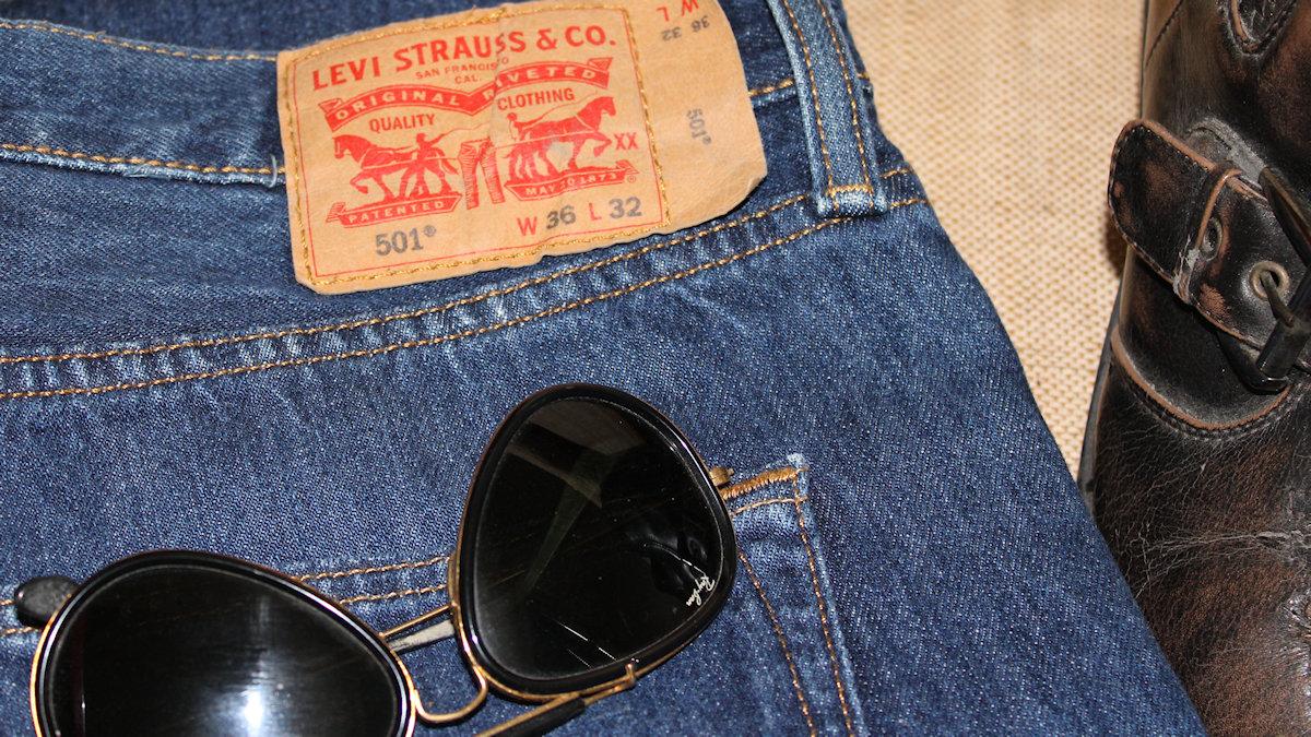 Un blouson et des lunettes aviateurs, un jean Levi Strauss 501 et des bottines, un bel assortiment d'une autre époque.